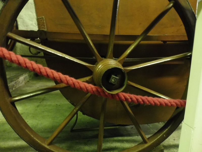 The wheels have 10 spokes and are of the English pattern with iron tyres on common axles. The axle is straight and passes through the body of the Brouette under the seat. Side springs of a straight profile are fixed to the underside of the shafts and mounted on the axle.