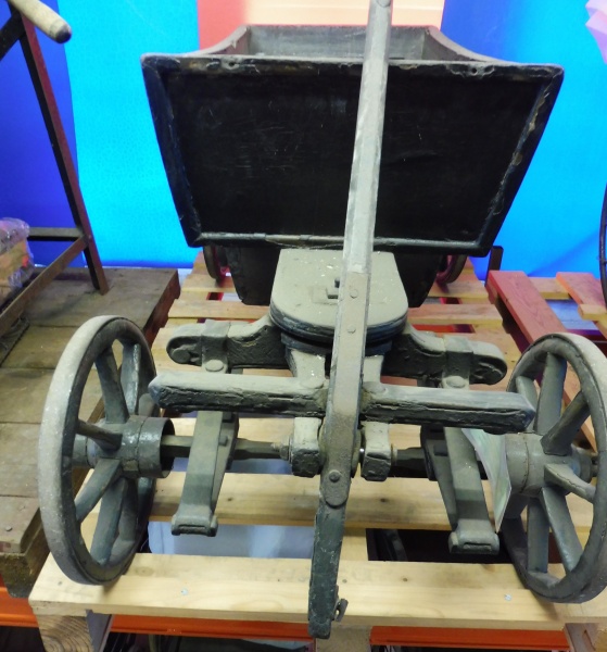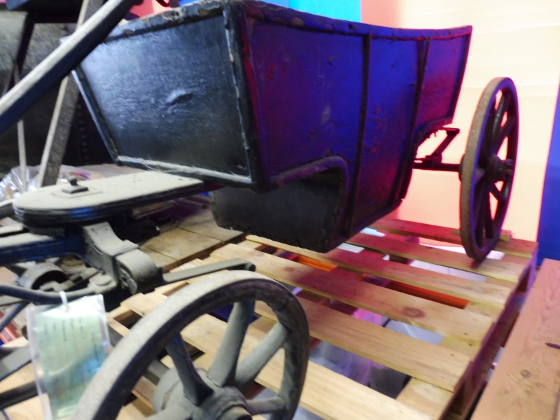 The design of Children’s Carriages was very often based on the full sized version within the family carriage collection. This example is loosely based on a Landau or a Vis-à-vis with two seats facing each other and a footwell. At the back is an unusual feature of a sword case. The body is simply constructed with plain panel sides. There are no doors, it is likely that very small children rode in this carriage and they would have been lifted into it.