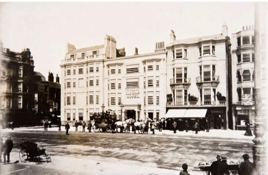 A photograph of the Ship Hotel in Brighton with a Stagecoach standing outside.