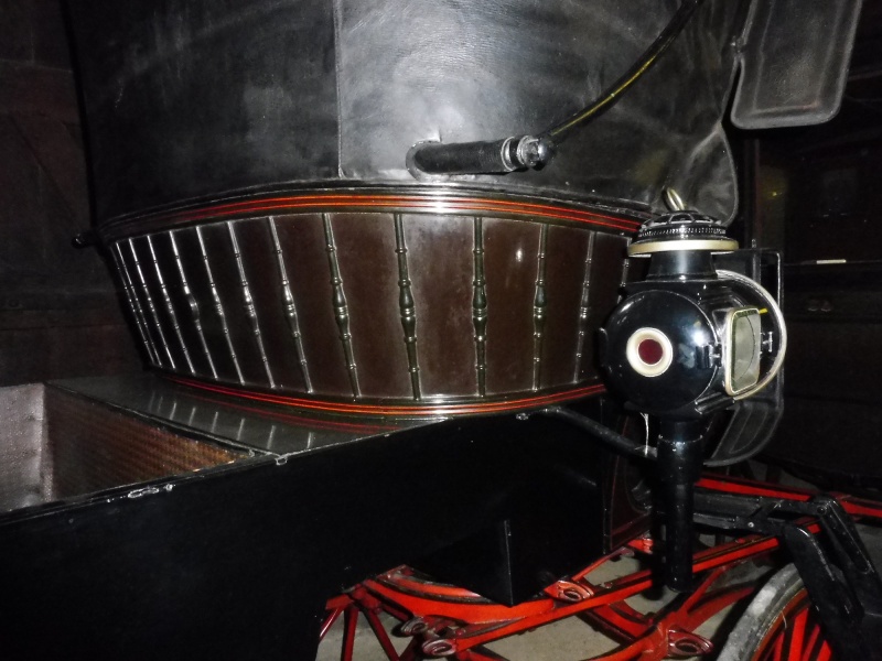 The lamps that are fitted have oval fronts and rectangular side lights. They have single chimney’s and are painted black with brass furniture. The brackets are fixed to the side of the body just under the front seat.