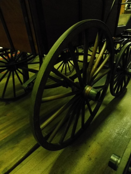 The wheels are 14 and 16 spoke Warner pattern with iron tyres on colinge axles. The front axle is straight and the back one is slightly compassed up. Elliptic springs are at the front and back. The forecarriage has facilities for both a single horse and a pair of horses. This carriage has a straight splinter bar with iron roller bolts and a pair of shafts with the usual iron furniture, A lever handbrake is fitted to the rear wheels.