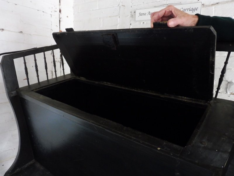 Jane Austen and her siblings used this little Donkey Gig in and around the village of Chawton near Winchester. It is a rare survival dating from around 1810 and is clearly village made being quite crude in construction but charming with it. At the time that this gig was made the Austen’s were not a wealthy family. It was pulled by a donkey, an animal that was cheaper to buy and to keep. With a village made gig this equipage was designed and built to function rather than be fashionable.