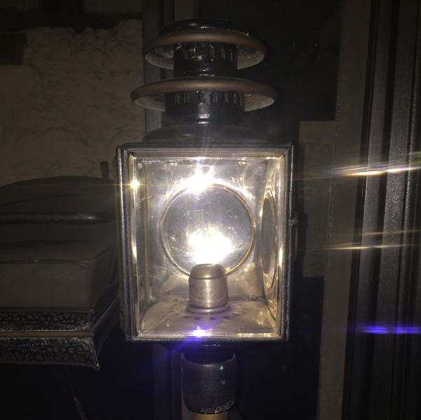 On the front of the footboard is a small leather dashboard with a leather whip holder on the offside. The lamps displayed with this carriage are made by Cowlard and Selby of London. They have square glass lights in the front and side and double circular chimneys.