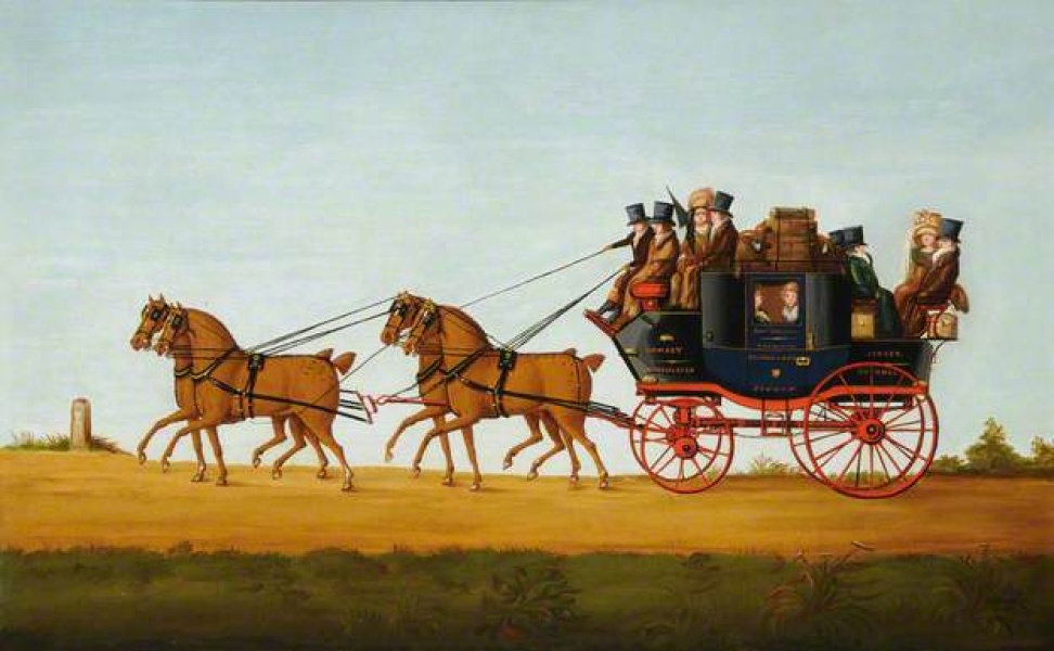 Messrs Andrew Collyer’s Mail Coach painted by an unknown artist in a style inspired by John Cordrey.