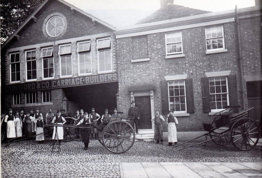 Historic photograph of a carriage works in Shrewsbury.
