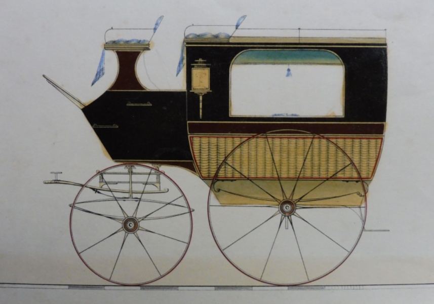 This is a coachbuilder's design for an Omnibus with sham cane side panels ad sprung on elliptic springs at the front and springs at the back.