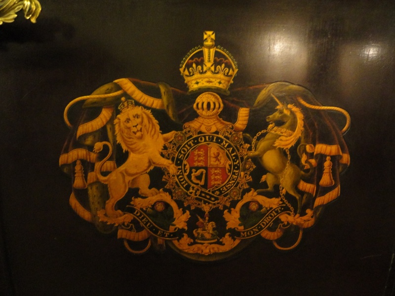 All Royal Carriages, including the motor cars. Are painted in a deep burgundy. State carriages such as this one have a scarlet under carriage with gold and black lining. The C springs and pump handles are painted gold and the Salisbury boot is painted black. On each door is a large Royal Coat of Arm. Two smaller cyphers are on the side panels to each side of the doors. One the back panel is again a large coat of arms and a much smaller cypher above. Another large coat of arms is painted on the front panel.