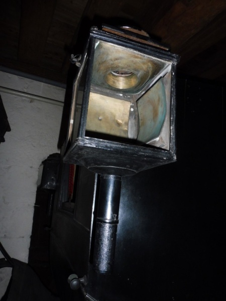 Lamp brackets are bolted to the front corners of the body of the coach. They hold square black painted lamps that are plain in design with single chimneys which are typical lamps for a travelling coach.