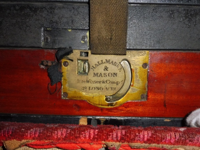On a brass plaque at the bottom of the shutters: HALLMARKE & MASON Late Winser&Comp 38 LONG ACRE